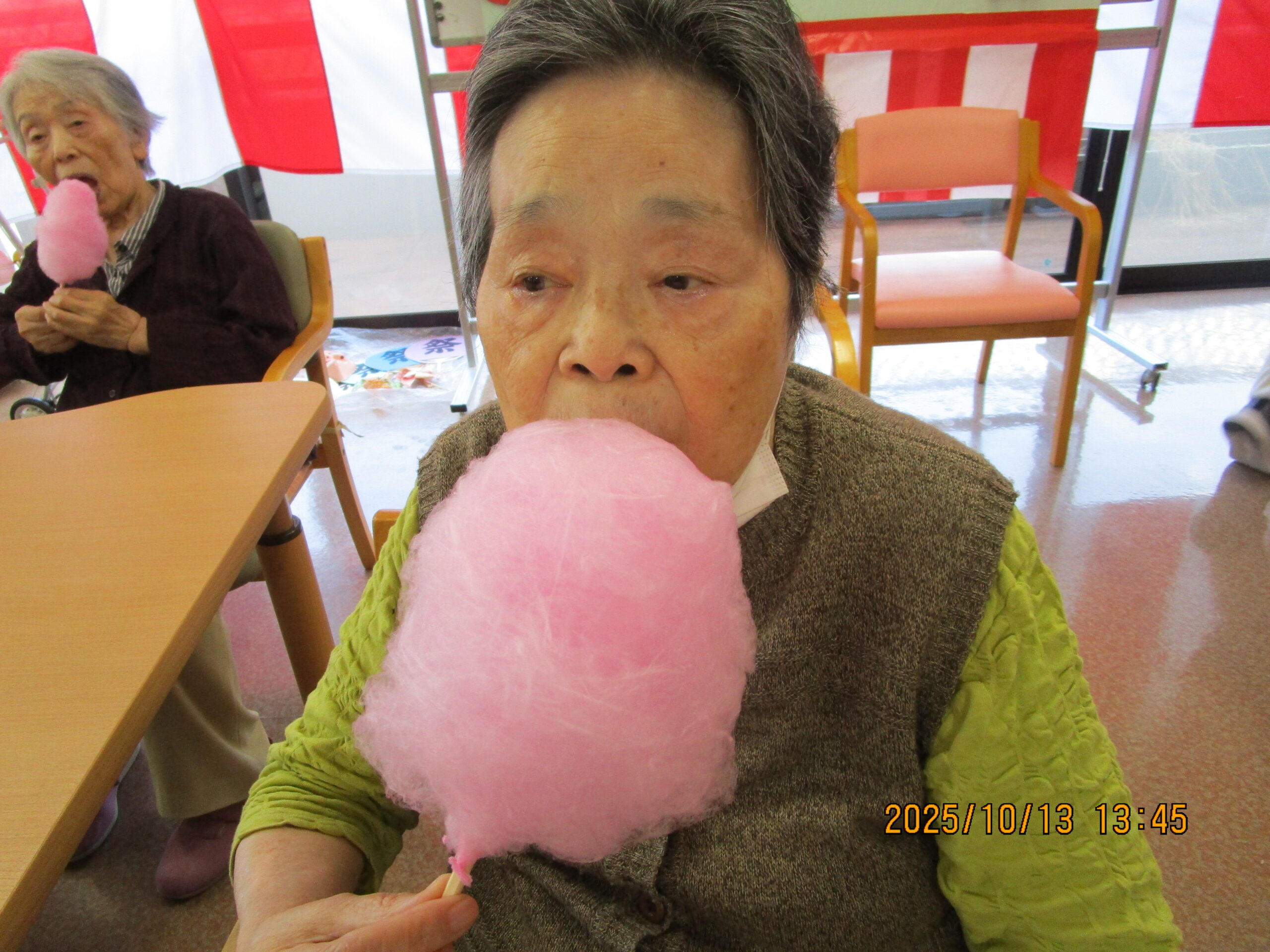 綿菓子のお味はどうですか?後ろの方も食べられてますね。