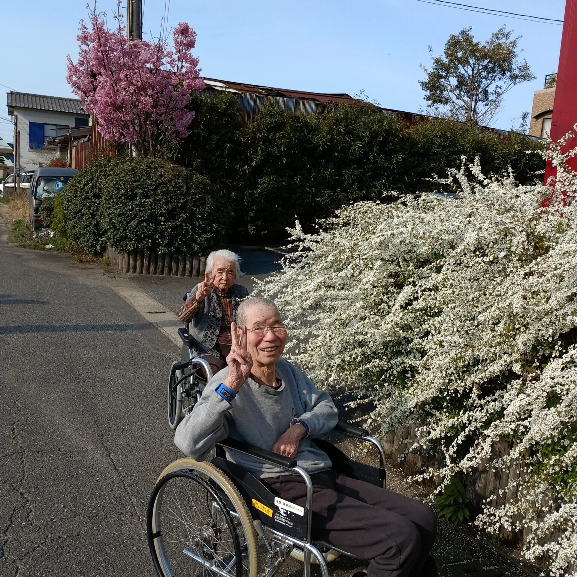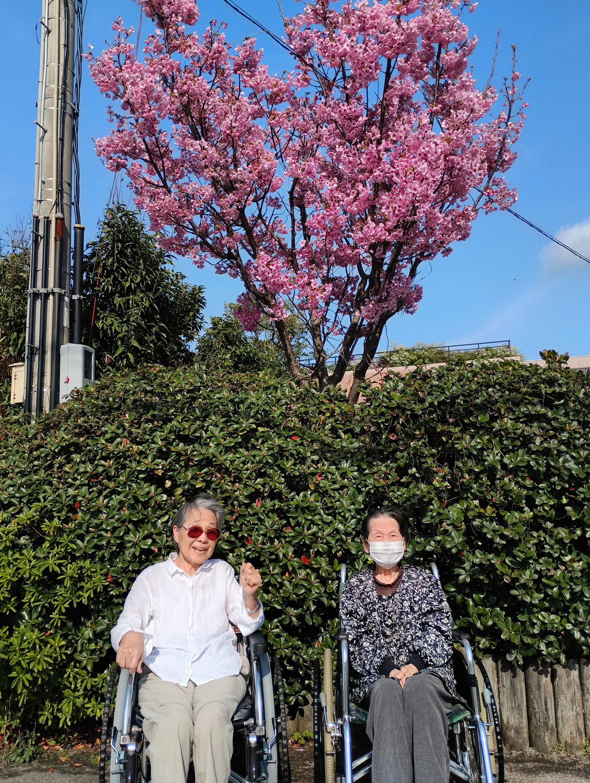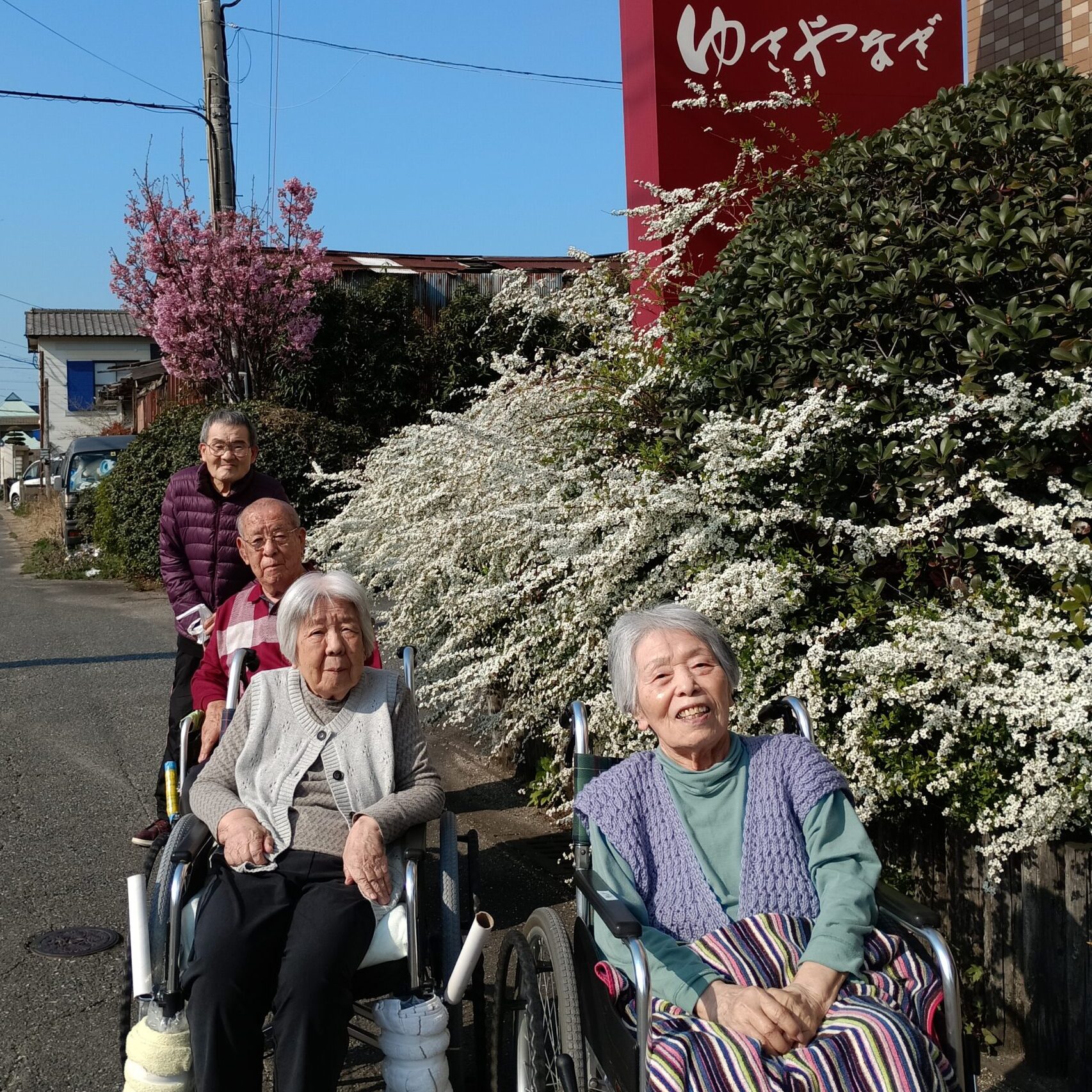 施設入り口の桜や、ゆきやなぎのお花が咲きました♪